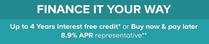**Buy now pay later: Payments deferred for the first 12 months, then either settle in full within in the payment free period with no interest to pay, or spread the cost over the following 36 months Interest free credit: Spend £1,000 for 1 year; £2,500 for 2 years; £4,500 for 3 years and £6,500 for 4 years